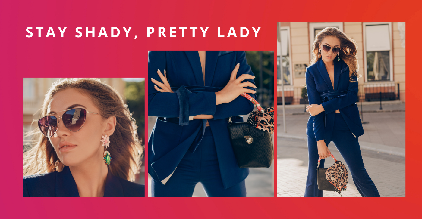 Be the lady by putting on sunglasses and hand bag