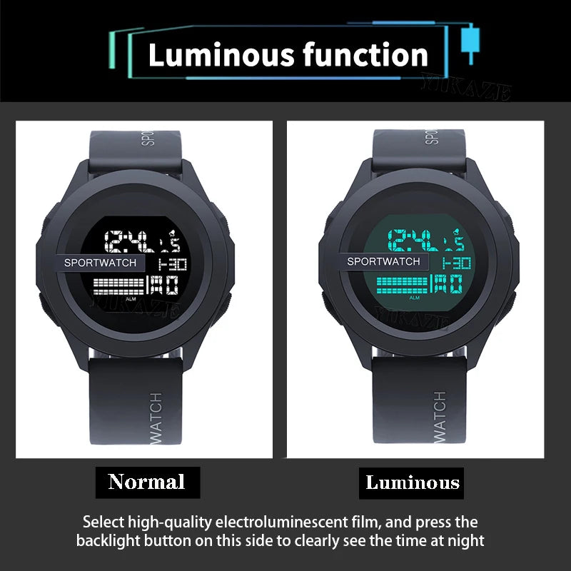 Digital Watch: Fashionable sporty dial design. Large Dial and numbers with light, show time clear in the dark. Easy to see the time clearly in the light, easy to read.